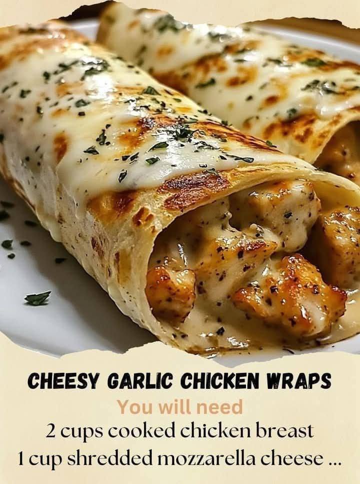 If you’re looking for a quick, easy, and irresistibly delicious meal, these cheesy garlic chicken wraps will be your go-to recipe. With juicy, seasoned chicken, a rich garlic sauce, and melty cheese all wrapped in a perfectly toasted tortilla, this dish satisfies every craving. In just 25 minutes, you’ll have a warm, cheesy, and savory wrap that’s perfect for a family dinner, lunch, or even as a snack. Here’s a comprehensive guide to creating these delightful wraps in your own kitchen.
